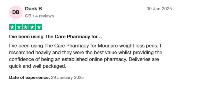 On Trustpilot, numerous patients have shared their experiences with Mounjaro, highlighting both the medication’s efficacy and the quality of service provided by The Care Pharmacy.