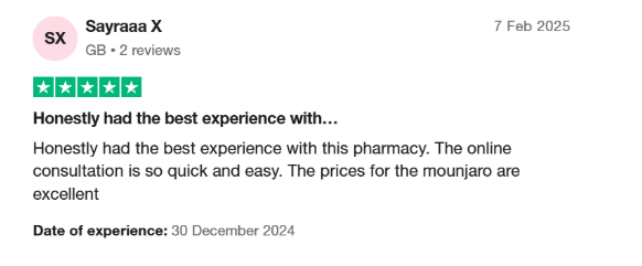 “Honestly had the best experience with this pharmacy. The online consultation is so quick and easy. The prices for the Mounjaro are excellent.” – Sayraaa X