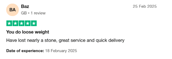 “You do lose weight. Have lost nearly a stone, great service and quick delivery.” – Baz